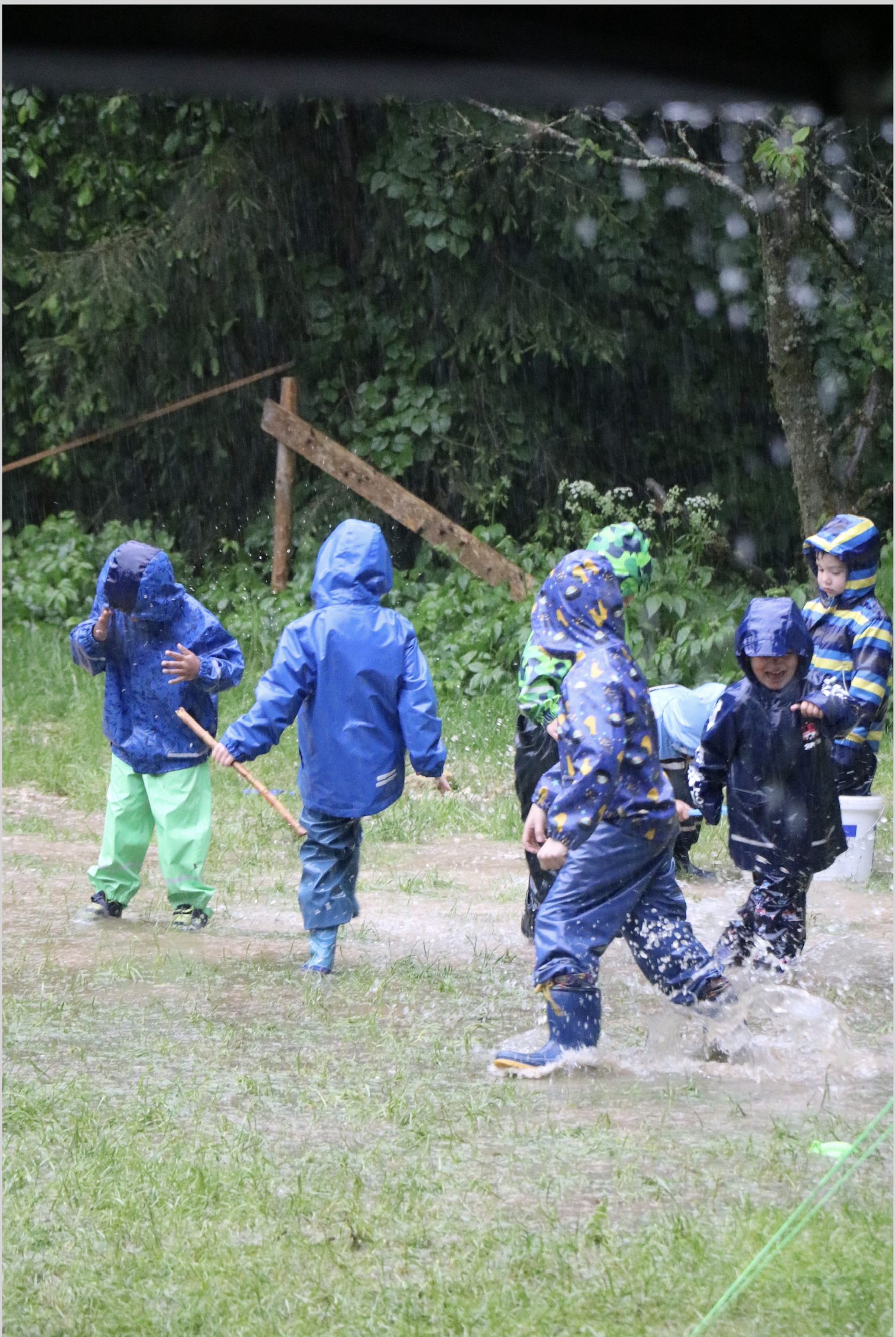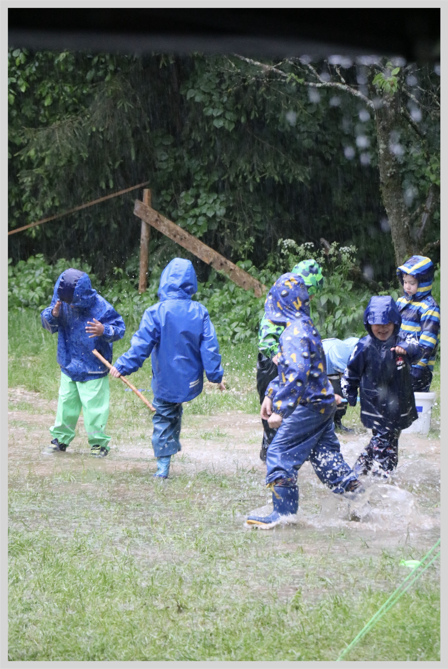 Die kleinen Kinder waren in kurzer Zeit bis auf die Haut nass. Was für ein Glück, dass der Zeltplatz gar nicht so weit weg ist von unserem Zuhause liegt. Da konnten wir auch mal nach Hause fahren zum Trockenlegen und Wäsche waschen. Während die kleinen Kinder auf dem Zeltplatz die Zelte aufbauten und sich schon einmal einrichteten. Fuhr eine Bande von
